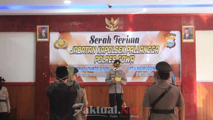 Faktual.Net, Gowa-Senin (06/04/20), Kapolsek Tompobulu Polres Gowa IPTU Hasbullah menghadiri Serah terima Kapolsek Pallangga yaitu dari AKP Hendra Suyanto ke pejabat baru IPTU Nasruddin di aula Endra darmalaksana Polres Gowa.