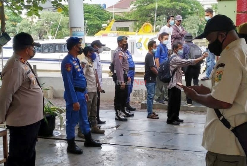 Diketahui, Personel Polres Kepulauan Seribu yang ditugaskan di Dermaga Keberangkatan Marina Ancol bergabung dengan instansi terkait setempat selain melaksanakan tugas pengamanan juga melakukan pengawasan protokol kesehatan dan mengecek scan barcode aplikasi peduli lindungi semua penumpang kapal yang akan ke Pulau Seribu.