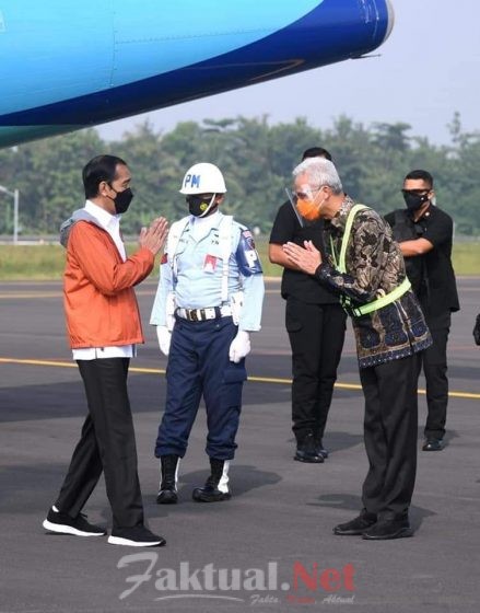 Faktual.Net, Purbalingga, Jateng – Kapolda Jateng Irjen Pol Ahmad Luthfi dan Pangdam IV Diponegoro Mayjen TNI Rudianto bersama Gubenur Jateng Ganjar Pranowo, menyambut kedatangan Presiden RI Joko Widodo di bandara Jenderal Besar Sudirman, Purbalingga, Pukul 09.00 Wib, Jumat (11/6/21).