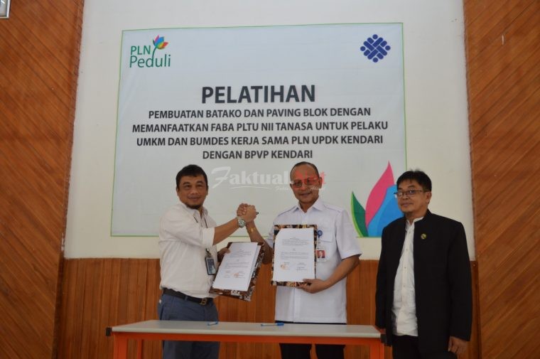 Bertempat di Aula Serbaguna Balai Pelatihan Vokasi dan Produktivitas (BPVP) Kendari, PLN UPDK Kendari kembali melakukan kerjasama untuk melatih 16 orang  pelaku UMKM dan BUMDes guna pemanfaatan FABA menjadi Batako dan Faving Blok.