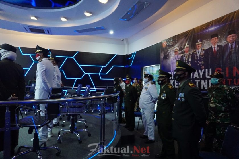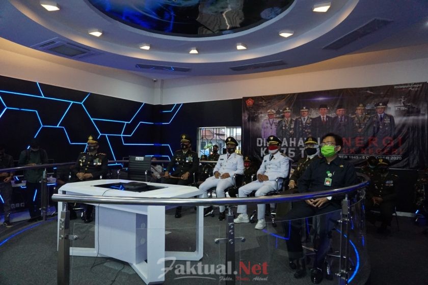 Faktual.Net, Batang, Jateng – Komandan Kodim 0736/Batang Letkol Inf Dwison Evianto dan Bupati Batang Wihaji bersama Kapolres Batang AKBP Edwin Louis Sengka serta Forkopimda, memperingati Hari Ulang Tahun (HUT) ke-75 TNI, kali ini digelar secara virtual di Ruang Command Center Kabupaten Batang, Senin (5/10/2020).