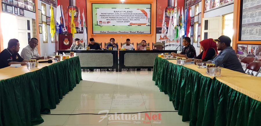 Faktual.Net,Tidore. Komisi Pemilihan Umum Daerah (KPU) Kota Tidore Kepulauan melakukan rapat pleno penetapan syarat Dukungan Minimal dan Sebaran Calon perseorangan dalam pemilihan Walikota dan Wakil Walikota tahun 2020, sabtu (26/10/19).