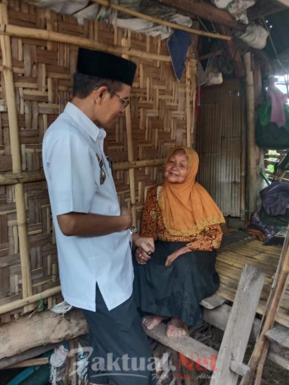 Kunjungan kepala dinas sosial ke desa pencong di antar langsun oleh kepala dusun Kareloe Muh Usman mengunjungi kediaman Dg cipa di kampung Katijon.