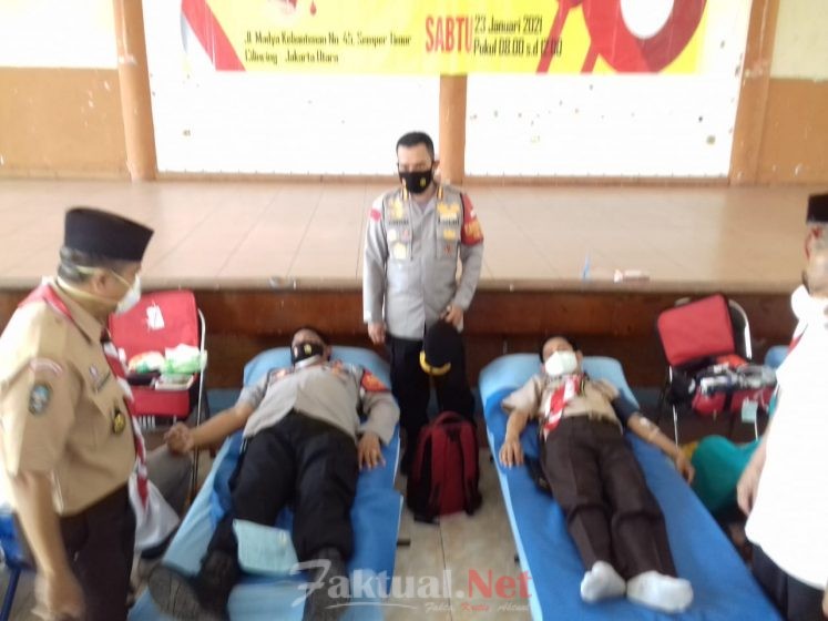 Faktual.Net, Jakarta Utara, DKI Jakarta-Kwartir Cabang (Kwarcab) Pramuka Jakarta Utara mengandeng PMI Kota Administrasi Jakarta Utara melaksanakan Donor Darah Sukarela  (Dondarela) di kantor Kwarcab Pramuka Jakarta Utara, Jl.Madya Kebantenan, Kelurahan Semper Timur, Cilincing, Jakarta Utara, Sabtu (23/01/2021). kegiatan donor darah ini tetap mengedepankan dan menerapkan protokol kesehatan pencengahan Covid-19.