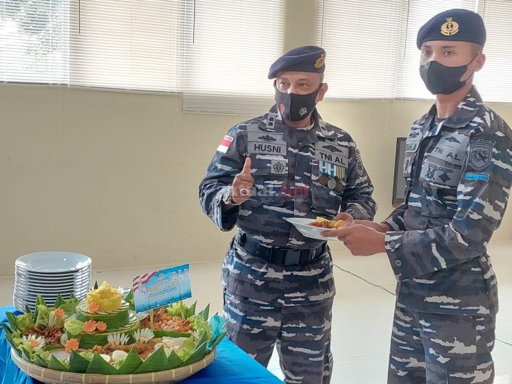 Setelah pelaksanaan upacara, dilanjutkan dengan pemotongan tumpeng oleh Palaksa Lanal Sabang Letkol Laut (KH) Husni, S.Ag., dan diserahkan kepada perwakilan Tamtama Remaja Kld Bah Mizrah Alfiansyah.