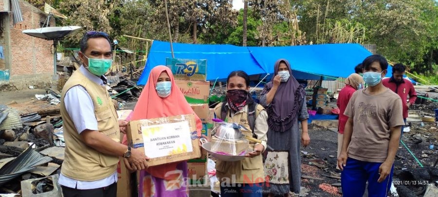 Faktual.Net, Bantaeng – Lembaga Amil Zakat Infaq dan Sedekah Muhammadiyah (Lazismu) dan Ikatan Mahasiswa Muhammadiyah Bantaeng mengunjungi korban kebakaran untuk menyalurkan bantuan di Desa Nipa-Nipa, Kecamatan Pa’jukukang Kabupaten Bantaeng, Rabu, (13/1/2021).