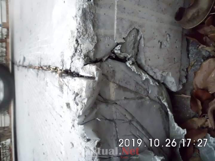 Begitu juga pekerjaan Bekisting – Dowel – Tiebar – Readymik FS 45 dan lain-lain, diduga tidak sesuai Kontrak dan Gambar, inilah hasil pekerjaan berakibat Pecah – Retak – Hancur foto terlampir.