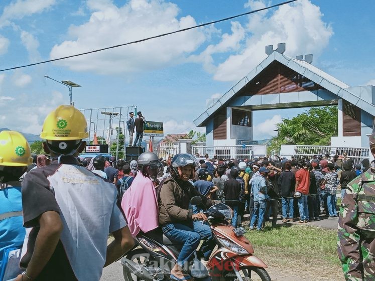 Pantauan faktual.net dilokasi, masa aksi melakukan konvoi dari Desa Bajo, Kecamatan Soromandi sampai depan kantor Bupati Bima, dikawal langsung oleh aparat gabungan TNI-Polri