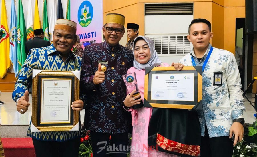 Faktual.Net, Jakarta. Pemerintah Kabupaten Bone Sulawesi Selatan, kembali menerima penghargaan Nasional Swasti Saba, di Ruang Sasana Bhakti Praja Kementerian Dalam Negeri, Jakarta Pusat, pada Selasa, 19/11/2019.