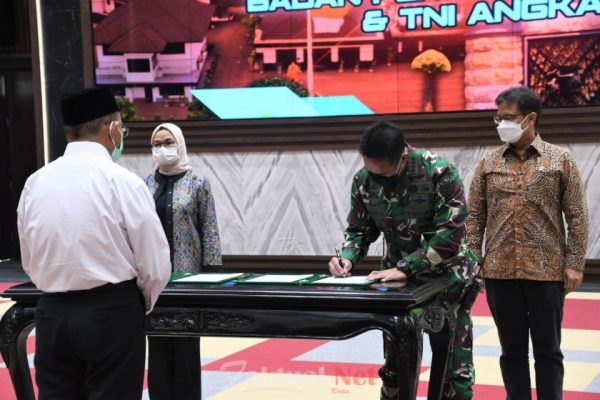 Faktual.Net, Jakarta – Menteri Kesehatan RI Budi Gunadi Sadikin, Kepala Staf Angkatan Darat Jenderal TNI Andika Perkasa dan Kepala Badan Pengawas Obat dan Makanan (BPOM) Penny K. Lukito menandatangani Nota Kesepahaman “Penelitian Berbasis Pelayanan Menggunakan Sel Dendritik untuk meningkatkan Imunitas terhadap Virus SARS-CoV-2” di Markas Besar TNI AD, Jakarta. Senin (19/4/2021) pagi.