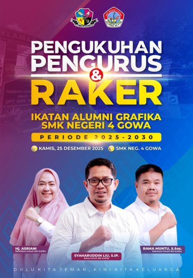 Faktual.net,Gowa, Sulsel-– Menjelang akhir tahun, Pengurus Ikatan Alumni SMK Negeri 4(IKA Grafika) Gowa akan segera menggelar pelantikan pengurus IKA SMK Negeri 4 Gowa, silaturahmi antar Keluarga Besar IKA Grafika.