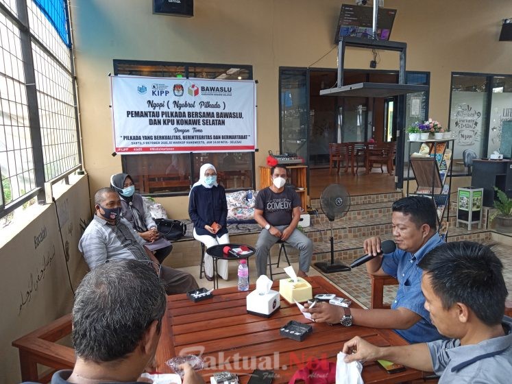 Faktual,Net, Konsel, Sultra – Lembaga Pemantau Pemilihan Kepala Daerah (Pilkada) Kabupaten Konawe Selatan (Konsel) menggelar Ngopi (Ngobrol Pilkada) bersama Bawaslu dan KPU Konsel di Warkop Ranomeeto, Sabtu, (3/10/2020).