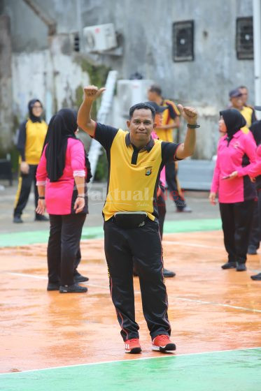 Setelah itu, para peserta melanjutkan dengan senam bersama. Dengan irama musik yang energik, seluruh peserta tampak antusias mengikuti gerakan senam. Baik anggota kepolisian maupun Bhayangkari terlihat kompak dalam mengikuti instruktur senam, menciptakan suasana yang ceria dan penuh semangat.