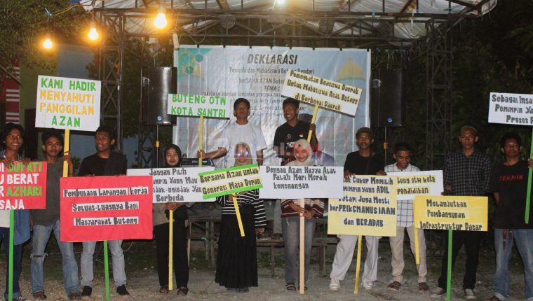 Faktual.Net, Kendari — Ratusan Pemuda dan Mahasiswa Kendari – Buteng mendeklarasikan dukungan terhadap Azhari dan Adam Basan sebagai pasangan bakal calon Bupati dan wakil Bupati Buton Tengah (Buteng) periode 2024-2029.