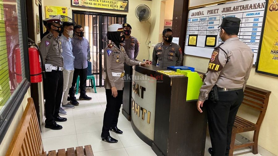 FAKTUAL.NET, SERANG – Pastikan tahanan dalam keadaan baik Perwira Pengawas (Pawas) Polres Serang yang piket pada hari ini AKP Tiwi Afrina bersama Ka SPKT II Polres Serang Bripka Crisal Andrea Hans Manurung dan piket fungsi Reskrim dan Personel Sat Tahti melakukan pengecekan ruang tahanan Polres Serang. Selasa, (15/03/2022).