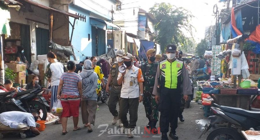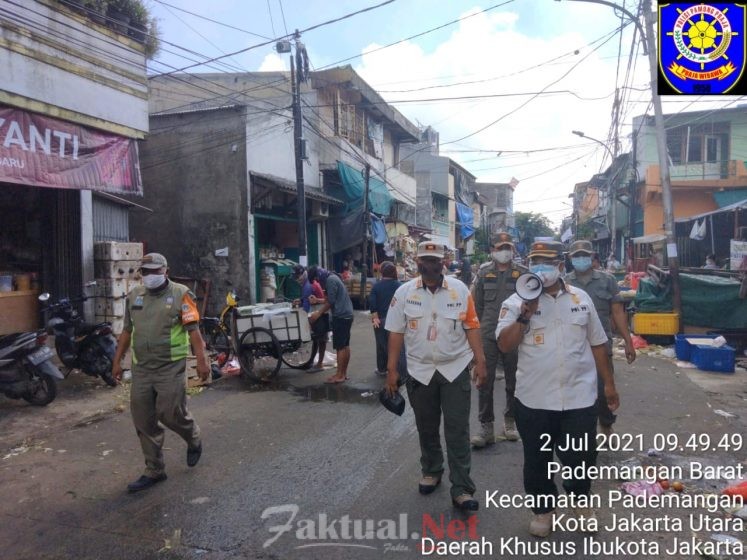 Faktual.Net, Jakarta Utara, DKI Jakarta-Satpol PP Kecamatan Pademangan, Satpol PP Kelurahan Ancol, Satpol PP Kelurahan Pademangan Timur, Satpol PP Kelurahan Ancol, Polsek Pademangan, serta Danposramil Pademangan memberikan imbauan kepada pedagang dan warga di Pasar Rajawali Kelurahan Pademangan Barat. Kegiatan ini dilakukan sebagai upaya untuk meningkatkan kesadaran warga pasar untuk selalu menjalankan protokol kesehatan.