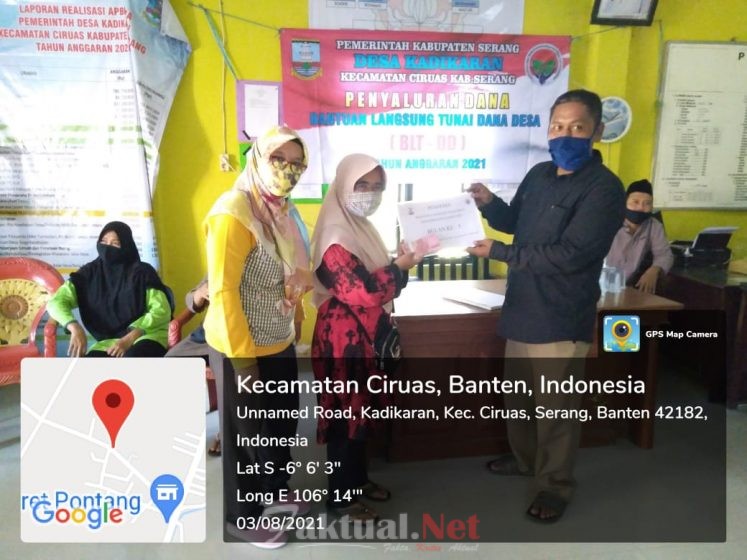 Faktual.Net, Serang, Banten – Pemerintah Desa (Pemdes) Kadikaran Kecamatan Ciruas kembali menyalurkan Bantuan Langsung Tunai Dana Desa (BLT-DD) secara serentak kepada Keluarga Penerima Manfaat (KPM) warga Desa Kadikaran. Adapun kali ini merupakan penerimaan tahap V di ruang pertemuan kantor Kepala Desa. Selasa (3/8/2021).