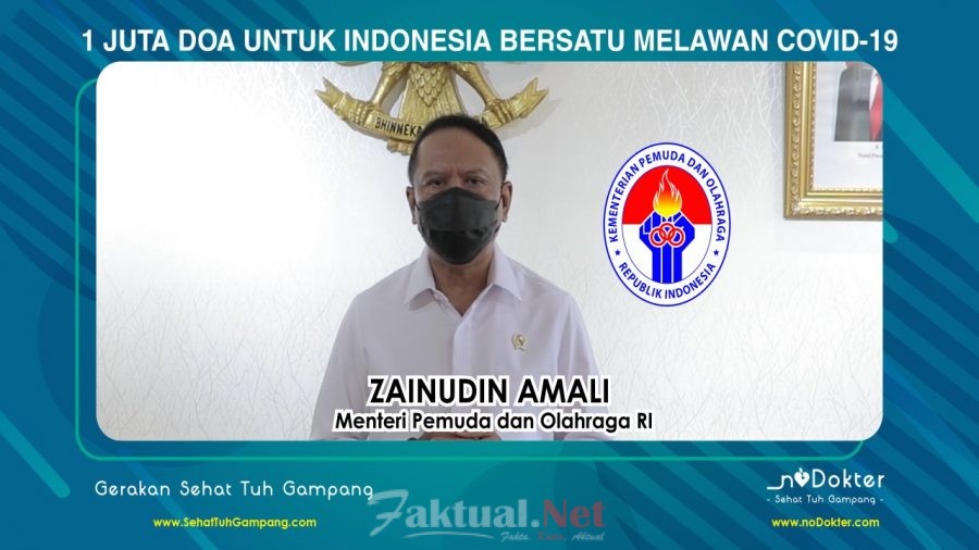 ”Saya Zainudin Amali, Menteri Pemuda dan Olahraga Republik Indonesia, ingin mengajak kepada seluruh lapisan masyarakat memanjatkan doa sesuai dengan agama dan keyakinan masing-masing. Kita bersatu melawan Covid-19. Kita berharap Covid-19 segera berakhir di negeri yang kita cintai ini,” ujar Menpora Zainudin Amali dalam video kampanyenya.