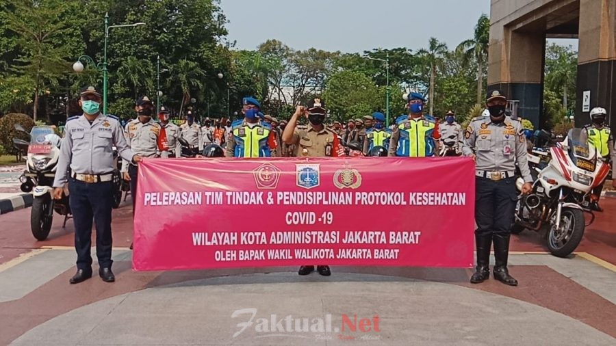 Faktual.Net, Jakarta – Wakil Wali Kota Administrasi Jakarta Barat Yani Wahyudi Purwoko, memimpin Apel Pendisiplinan Kepatuhan Protokol Kesehatan Pencegahan Penyebaran Covid-19, di halaman Utama Kantor Walikota Jakbar, Selasa (15/09/2020).