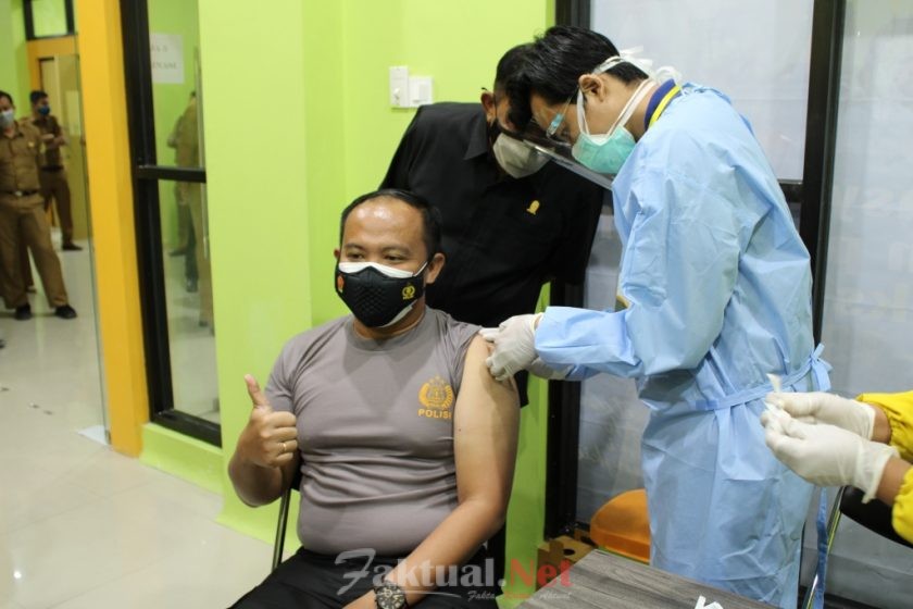 Faktual.Net, Sinjai, Sulsel, Kepala Kepolisian Resor Sinjai Ajun Komisaris Besar Polisi (Akbp) Iwan Irmawan,S.Ik.,M.Si mengikuti vaksin dalam rangka melaksanakan pencanangan vaksinasi Covid-19, Senin (01/2/2021).