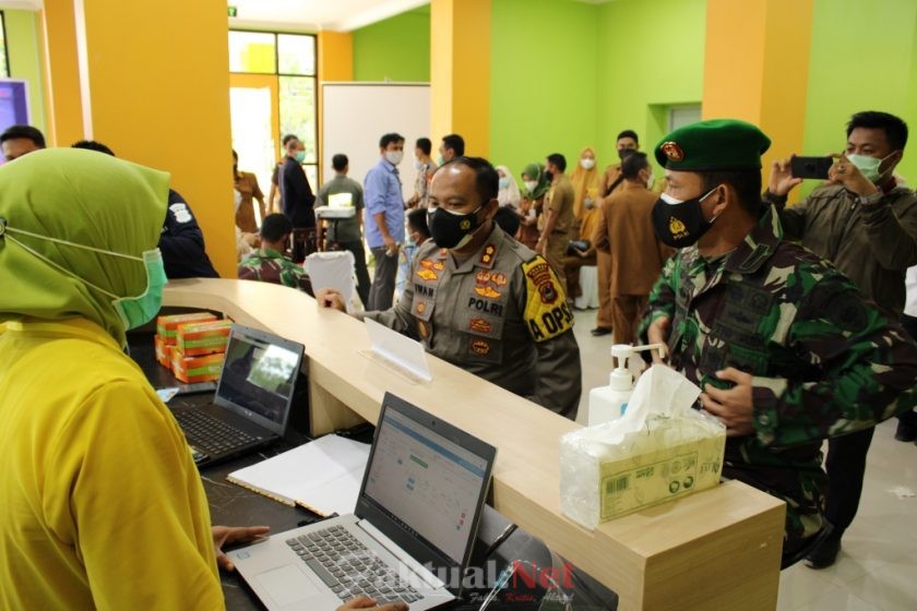 Kapolres Sinjai bersama unsur Forkopimda melakukan vaksinasi, dan sebelum vaksinasi semua peserta yang masuk daftar penerima vaksin dilakukan screening terlebih dahulu untuk memenuhi syarat untuk divaksin.