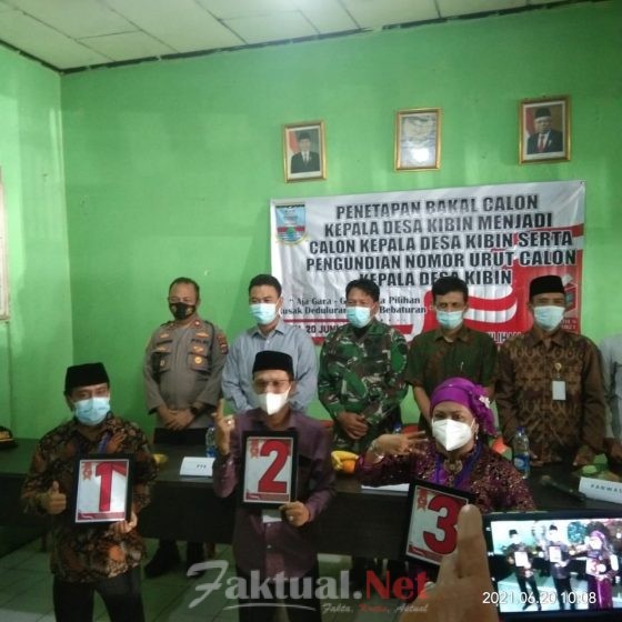 Akhirnya ditetapkan para Calon Kades Kibin dalam Pilkades 2021, yaitu nomor urut satu Saeful Anwar, nomor urut dua Achmad Samsudin, dan nomor urut tiga Memah Elyah.