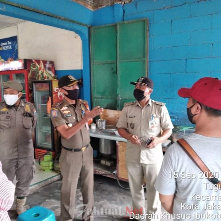 Jakarta, Faktual.Net-Pemilik rumah makan dan baso di Jl Plumpanga Raya serta Jl Logistilah, Kelurahan Tugu Selatan, Koja, Jakarta Utara, Selasa (15/09/2020), disosialisasikan tentang Pergub No 88 Tahun 2020 tentang Pembatasan Sosial Berskala Besar (PSBB).