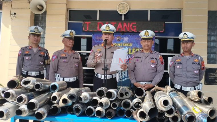 Faktual.Net, Batang, Jateng – Sebanyak 214 unit kendaraan bermotor yang dilengkapi dengan knalpot yang tidak sesuai dengan standar atau knalpot brong diamankan Satlantas Polres Batang dalam rentang waktu 5-16 Agustus 2023.