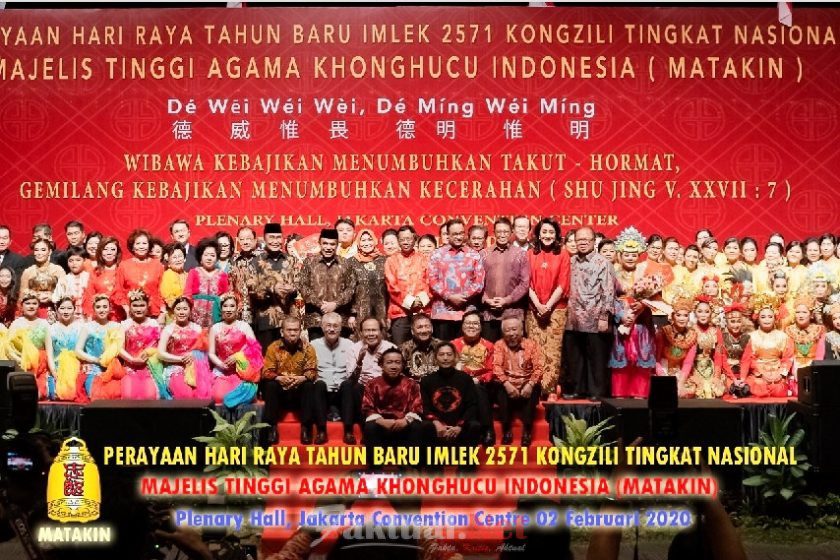 FAKTUAL.NET, JAKARTA – Bertempat di Plenary Hall Jakarta Convention Center Minggu, (02/02/2020) dari pukul 12.30 sampai selesai diselenggarakan Perayaan Hari Raya Tahun Baru lmlek 2571 Khongzili Tingkat Nasional ke 21 MATAKIN merupakan satu hari suci keagamaan bagi umat Khonghucu, disamping hari suci lainnya seperti Duan Yang (Puncak Musim Panas), Zhong Qiu (Pertengahan Musim Rontok), Dong Zhi (Puncak Musim Dingin), Qing Ming (Sadranan) dan Zhisheng Dan (Hari Lahir Nabi Kongzi, Confucius).