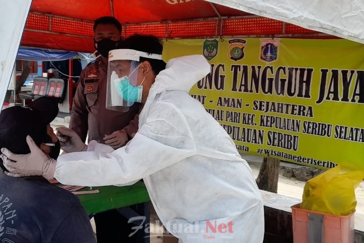 Faktual.Net, Kepulauan Seribu, DKI Jakarta- Polsek Kepulauan Seribu Selatan, Polres Kepulauan Seribu bersama Tiga Pilar dan Tim Kampung Tangguh Jaya Pulau Pari Kecamatan Kepulauan Seribu Selatan memperketat aturan penerapan aturan protokol kesehatan baik kepada warga masyarakat maupun kepada pendatang.