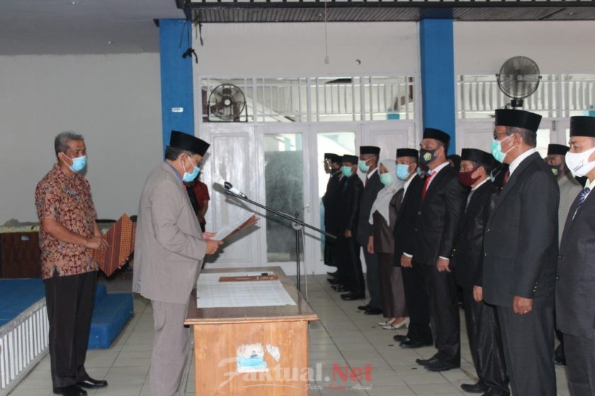 Tercatat ada 66 pejabat Dikbud Sultra yang dilantik dan diambil sumpahnya oleh Gubernur Sultra, H Ali Mazi SH melalui Asisten Administrasi Umum Sekretaris Provinsi Sultra, La Ode Mustari di Aula Dikbud, Jum’at, (18/9/2020).