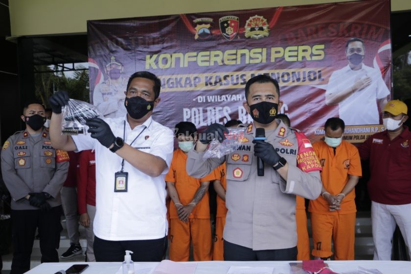 Faktual.Net, Batang, Jateng – Polda Jawa Tengah bersama Polres Batang berhasil mengungkap kasus penculikan dan pemerasan dengan meminta uang tebusan hingga ratusan juta sekaligus mengamankan lima tersangka dan beberapa barang bukti seperti dua pucuk senjata api rakitan, uang Rp8,1 juta, telepon seluler, satu unit mobil, satu sepeda motor dan beberapa ATM.