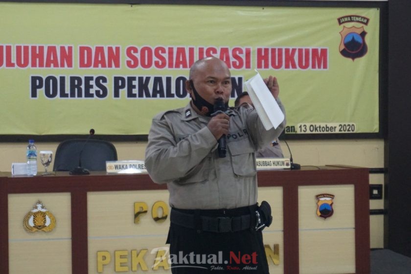 Faktual.Net, Pekalongan, Jateng – Kepolisian Resor (Polres) Pekalongan menggelar giat penyuluhan dan sosialisasi hukum tentang strategi penanganan tindak pidana Pilkada serentak dan menghadapi gugatan Praperadilan serta pelaksanaan Pilkada serentak 2020, di Aula Mapolres Pekalongan, Selasa (13/10/2020).