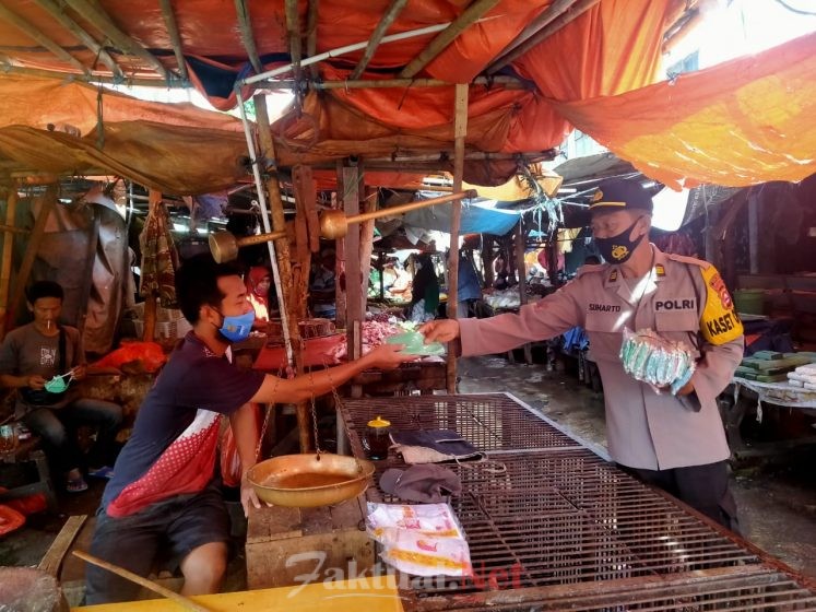 Faktual.Net, Serang, Banten – Polres Serang Kota Polda Banten kembali membagi-bagikan masker kepada pengemudi, penumpang dan masyarakat, Rabu (3/3/2021).