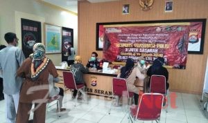 Pelaksanaan vaksinasi COVID-19 secara gratis ini ditujukan kepada masyarakat yang berdomisili di Kabupaten Serang ini digelar di Aula Serja Arya Mapolres Serang, Senin (20/7/2021).