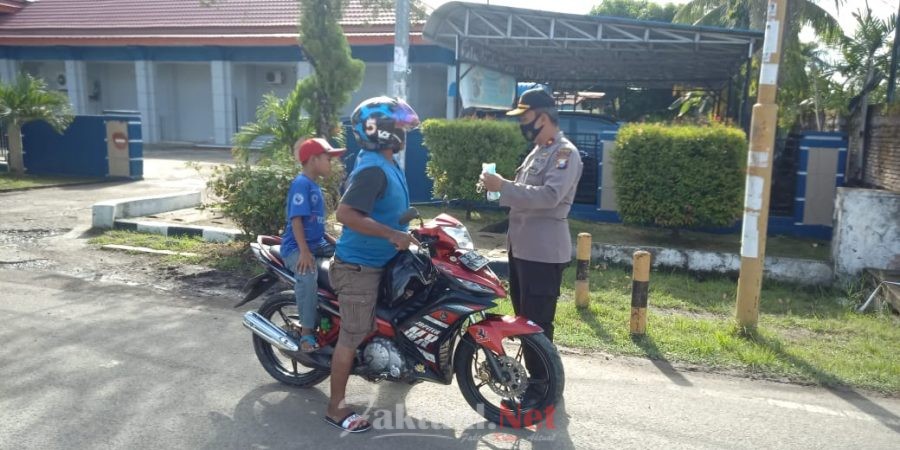 Faktual.Net, Sinjai, Sulsel – Polres Sinjai menggelar kegiatan dalam upaya mencegah penyebaran Covid-19 di dalam kota Sinjai dengan membagikan masker kepada para pengendara dijalan Persatuan Raya, Kelurahan Balangnipa, Kecamatan Sinjai Utara, Kabupaten Sinjai. Kamis pagi (11/03/2021).