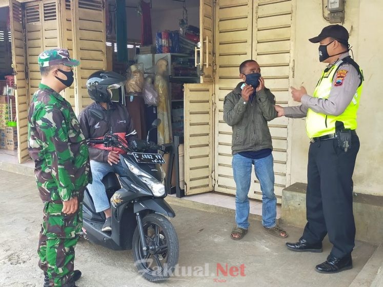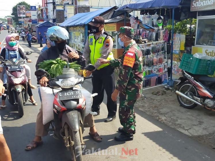 Faktual.Net, Batang, Jateng – Menanggapi Implementasi Inpres no 6 Tahun 2020, Jajaran Kepolisian Polsek Bandar bersama koramil 07 dan staff Kecamatan Bandar lakukan giat Operasi Yustisi serta Razia Masker di Wilayah hukum Polsek Bandar, Sabtu, (19/09/20)