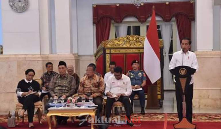 Faktual. Net, Jakarta. Presiden Joko Widodo menggelar sidang kabinet paripurna dengan bahasan evaluasi pelaksanaan Rencana Pembangunan Jangka Menengah Nasional (RPJMN) 2014-2019 dan persiapan implementasi APBN 2020 di Istana Negara, Jakarta pada Kamis 3/10/19. Pada kesempatan itu, Jokowi menyampaikan apresiasi dan ucapan terima kasih kepada seluruh jajaran Kabinet Kerja atas kerja keras yang telah dilakukan selama lima tahun terakhir.