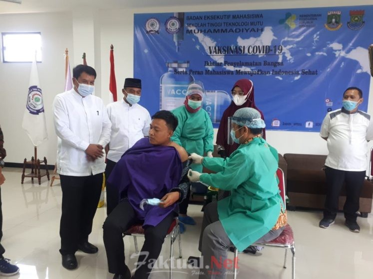 “Vaksinasi di STTM Muhammadiyah merupakan vaksinasi pertama kepada mahasiswa di wilayah Provinsi Banten. Mudah-mudahan vaksinasi ini bisa menjadi contoh supaya rekan mahasiswa atau masyarakat luas tidak takut,” jelas Riyan.
