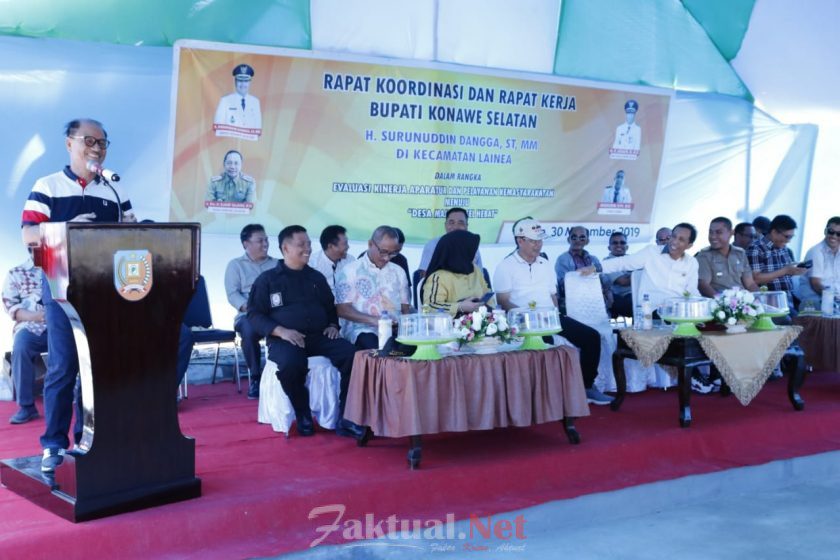 Penyaluran sejumlah bantuan ini diberikan Bupati Konsel saat melakukan Rapat Kordinasi (Rakor) dan Rapat kerja bersama Pemerintah Kecamatan Lainea dalam rangka Evaluasi Kinerja Aparatur dan Pelayanan Kemasyarakat Menuju Desa Maju Konsel Hebat, dilaksanakan di Balai Kecamatan Lainea, Sabtu, 30/11/2019.