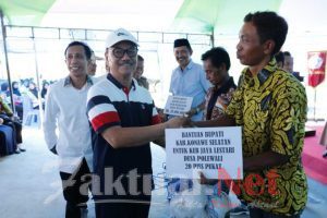 Faktual.Net, Konsel, Sultra. Bupati Konawe Selatan (Konsel) H Surunuddin Dangga ST MM menyalurkan Kartu Asuransi Nelayan dan 40 pukat Alat Tangkap Ikan di Kecamatan Lainea.