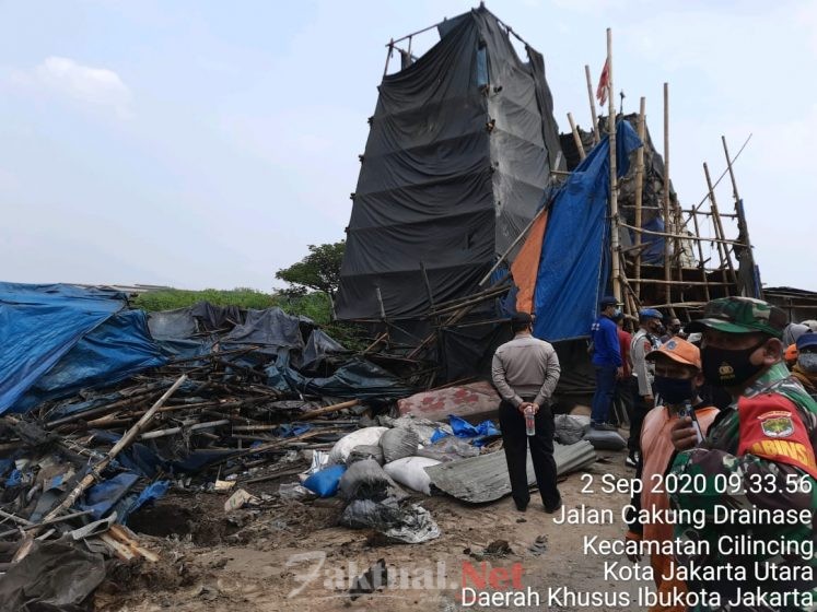 Jakarta, Faktual.Net-Sebanyak 200 petugas gabungan yang terdiri dari Satpol PP, Suku Dinas Lingkungan Hidup (LH), Suku Dinas Sumber Daya Air (SDA) Jakarta Utara, kepolisian, TNI, PPSU, Kecamatan dan Kelurahan Cilincing bersama jajaran FKDM Kecamatan Cilincing, melakukan penertiban lokasi pembakaran arang di Jalan Inspeksi Kali Cakung Grand, RT 07/09 Kelurahan Cilincing, Rabu (02/09/2020).