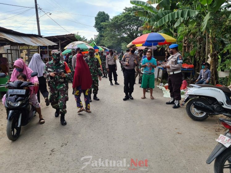 Kapolsek Pallangga bersama Danramil KAPTEN Inf Basri, Wakapolsek Iptu Sulaiman, Kanit Provos Aiptu Eko, Kanit Binmas Aiptu Syamsu Alam dan anggota Binmas, Babinsa, Satpol PP dan petugas kesehatan melakukan himbauan kepada para penjual dipasar paku desa julubori kecamatan pallangga agar menggunakan masker, menyediakan tempat cuci tangan dan tetap jaga jarak.
