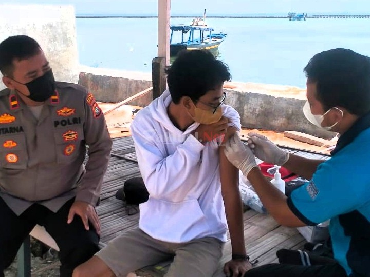 Faktual.Net, Kepulauan Seribu, DKI Jakarta – Untuk meningkatkan pelayanan dan capaian vaksinasi booster COVID-19, Polsek Kepulauan Seribu Selatan bersama Tenaga Kesehatan Puskesmas Kecamatan dan kelurahan serta tokoh masyarakat setempat mengadakan suntik vaksin dosis 3 secara door to door di Pulau Tidung.