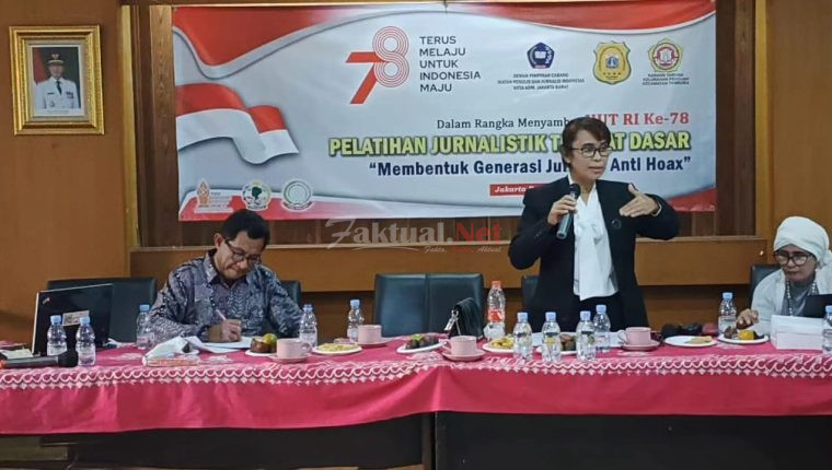 Faktual.net – Jakarta Barat, DKI Jakarta – Dalam rangka menyambut HUT Ke-78 Republik Indonesia, Dewan Pimpinan Cabang Ikatan Penulis dan Jurnalis Indonesia Kota Administrasi Jakarta Barat (DPC IPJI Jakarta Barat) bersama Karang Taruna (Katar) dan Forum Kewaspadaan Dini Masyarakat (FKDM) Kelurahan Pekojan, menggelar kegiatan Pelatihan Jurnalistik tingkat Dasar dengan tema “Membentuk Generasi Jurnalis Anti Hoax” yang dilaksanakan di Aula Kelurahan Pekojan Kecamatan Tambora Jakarta Barat, Senin (21/8/2023).