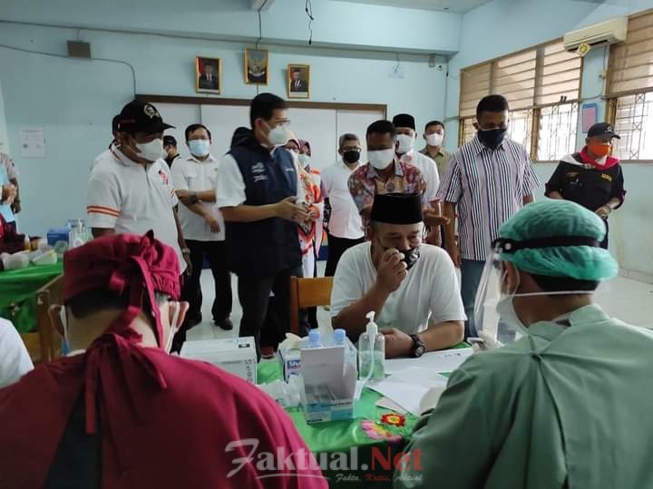 Faktual.Net, Jakarta Timur, DKI Jakarta-Sekretaris Daerah (Sekda) Provinsi DKI Jakarta, Marullah Matali, meninjau pelaksanaan vaksinasi Covid-19 di SMPN 106, Jalan H. Baping Kelurahan Ciracas, Kecamatan Ciracas, Jakarta Timur, Sabtu (7/8/2021).
