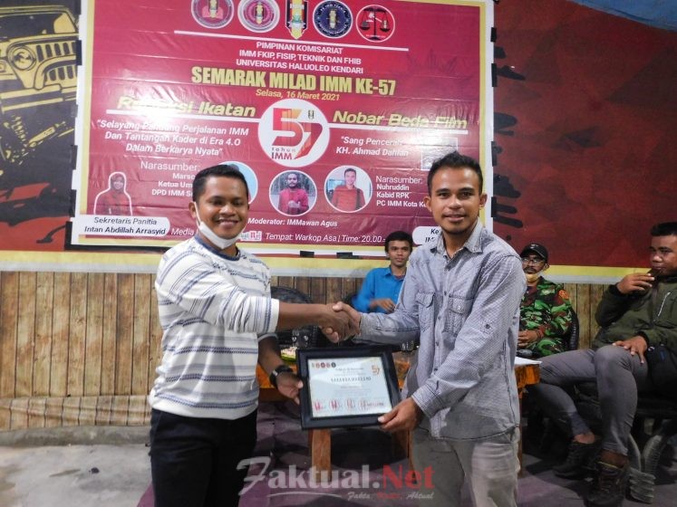 Faktual.Net, Kendari, Sultra — Empat Pimpinan Komisariat di jajaran Ikatan Mahasiswa Muhammadiyah (IMM) Universitas Haluoleo (UHO) Fakultas Ilmu Sosial dan Ilmu Politik (FISIP), Fakultas Keguruan dan Ilmu Pendidikan (FKIP), Fakultas Hukum dan Ilmu Budaya (FHIB) dan Teknik, menggelar Nobar (Nonton bareng) di rangkaikan dengan dialog refleksi ikatan, dalam rangka memperingati Milad IMM yang ke-57 tahun, yang bertempat di Warkop Kedai Asa, Selasa (Malam), 16/03.