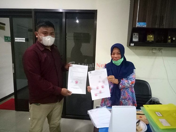Keterangan fhoto: Penandatanganan bukti terima oleh petugas Disnaker