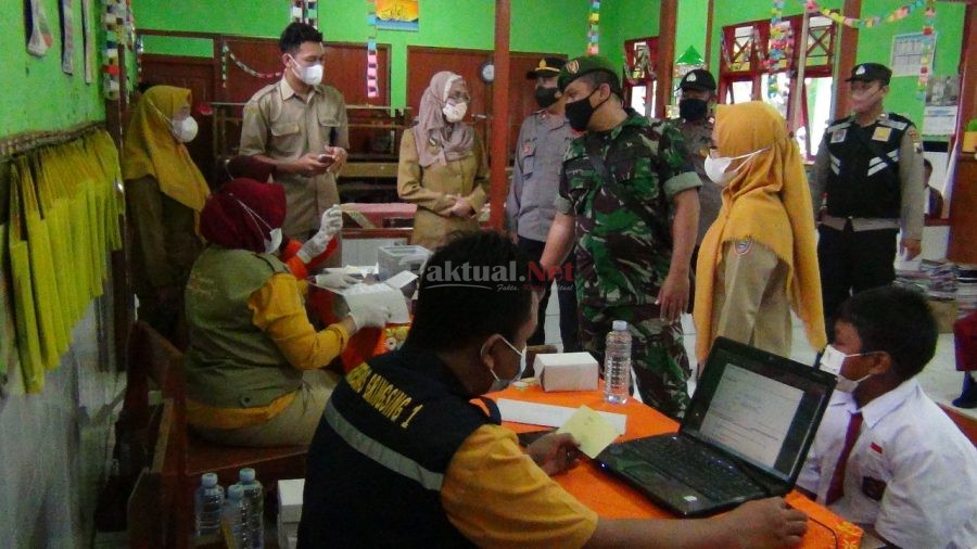 Faktual.Net, Batang, Jateng – Untuk mengetahui situasi dan kondisi pelaksanan vaksinasi anak usia 6 sampai 11 Tahun bagi pelajar Sekolah Dasar, personel Koramil dan Polsek Gringsing memantau langsung ke lokasi kegiatan.
