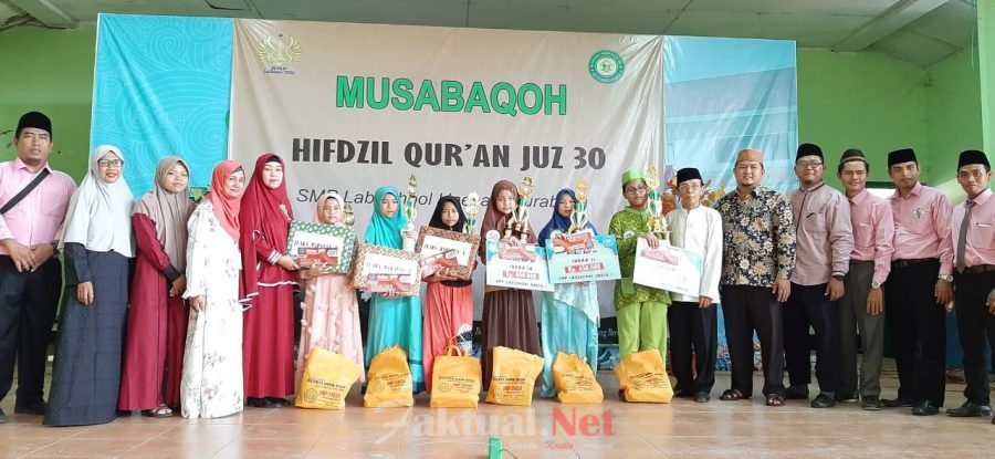Faktual.Net, Surabaya, Jatim. SMP Labschool Unesa 1 menggelar lomba Tahfidz Qur’an Juz 30 yang diikuti para siswa kelas SD kelas 5 dan 6 se Kota Surabaya di SMP Labschool Unesa 1, Jl. Kawung, No. 9, Kel. Kemayoran, Kec. Krembangan, Kota Surabaya.